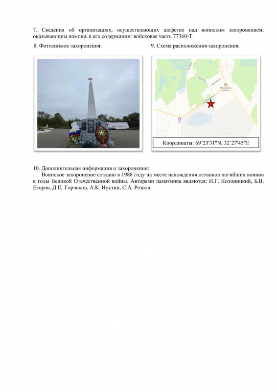 8. Воинское захоронение «Братская могила погибших советских воинов 1941-1944 год»