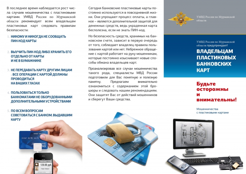 УМВД России по Мурманской области предупреждает! Осторожно - мошенники! Информация для владельцев пластиковых карт. Будьте осторожны и внимательны!