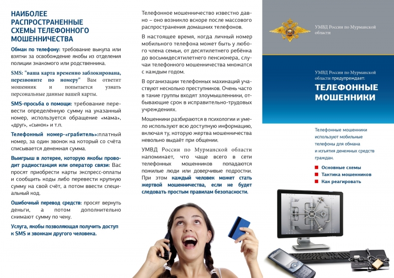 УМВД России по Мурманской области предупреждает: ТЕЛЕФОННЫЕ МОШЕННИКИ.