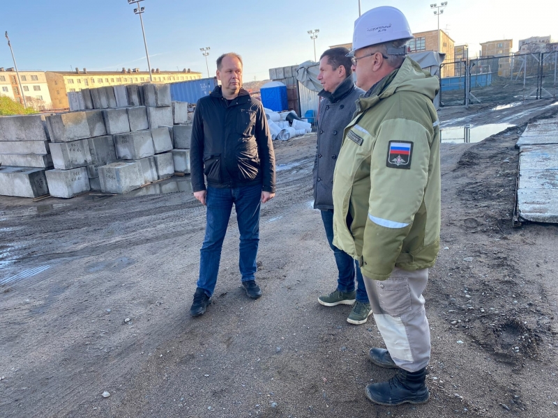 В Заозерске в рамках национального проекта «Демография» продолжается строительство физкультурно-оздоровительного комплекса с бассейном. Ход работ на объекте проверил и.о. министра строительства Мурманской области Алексей Грачиков.