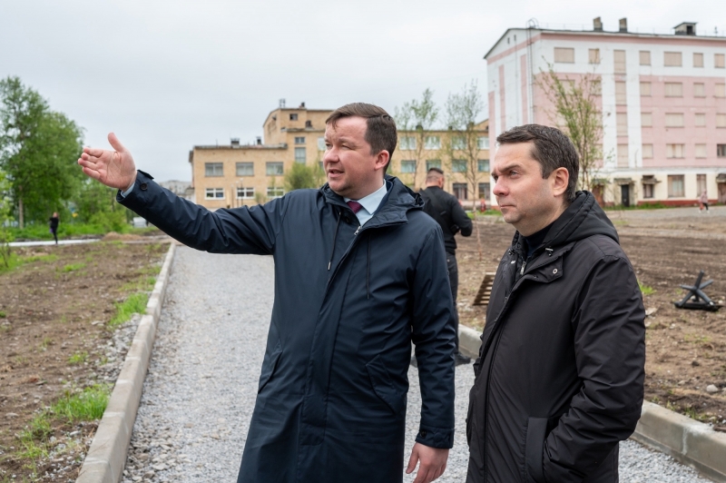В рамках реновации ЗАТО и плана «На Севере – жить» благоустраивают придомовую территорию на Мира, 15-17. Идет ремонт дорожного полотна и тротуары, меняют освещение и бордюры, делают ливневую канализацию. Ремонтируются автодороги на Флотской и Корчилова, в переулках Гранитный и Молодежный.