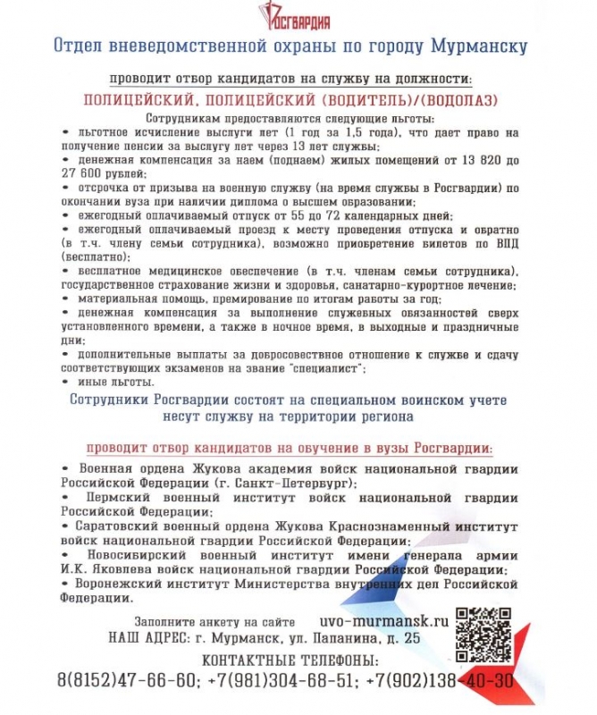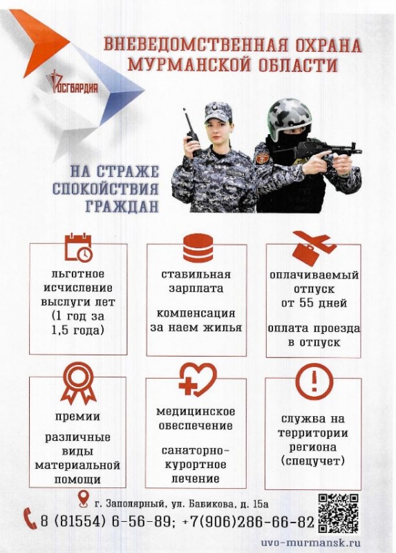 Вневедомственная охрана Мурманской области приглашает на службу кандидатов.