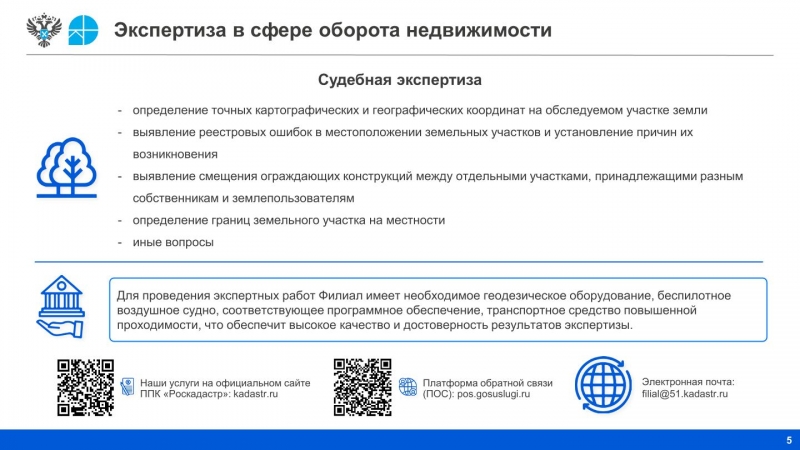 Деятельность в данном направлении осуществляется в соответствии с частью 2 статьи 4 Федерального закона от 30.12.2021 № 448-ФЗ «О публично-правовой компании «Роскадастр», а также частями 19 и 20 статьи 62 Федерального закона от 13.07.2015 № 218-ФЗ «О государственной регистрации недвижимости».