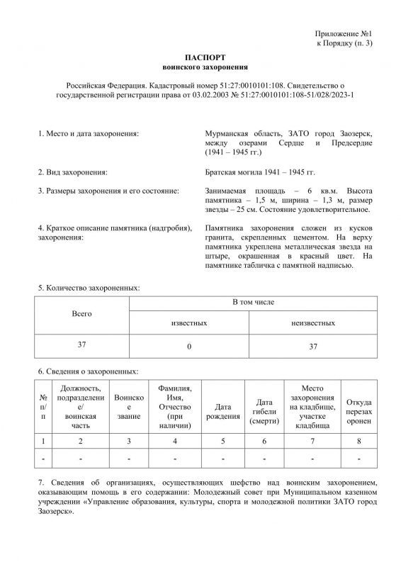 2. Воинское захоронение «Братская могила погибших советских воинов 1941-1945 год»