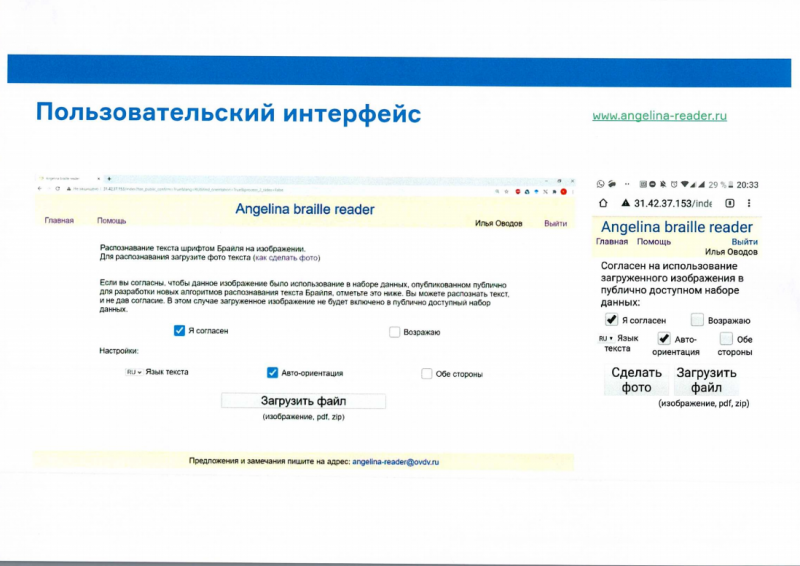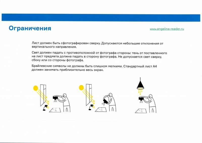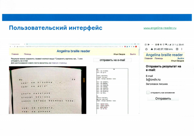 Данное цифровое решение http://angelina-reader.ru находится в свободном доступе и может быть использовано гражданами, профильными сообществами, государственными и иными организациями, предоставляющими людям с нарушением зрения услуги в различных сферах.