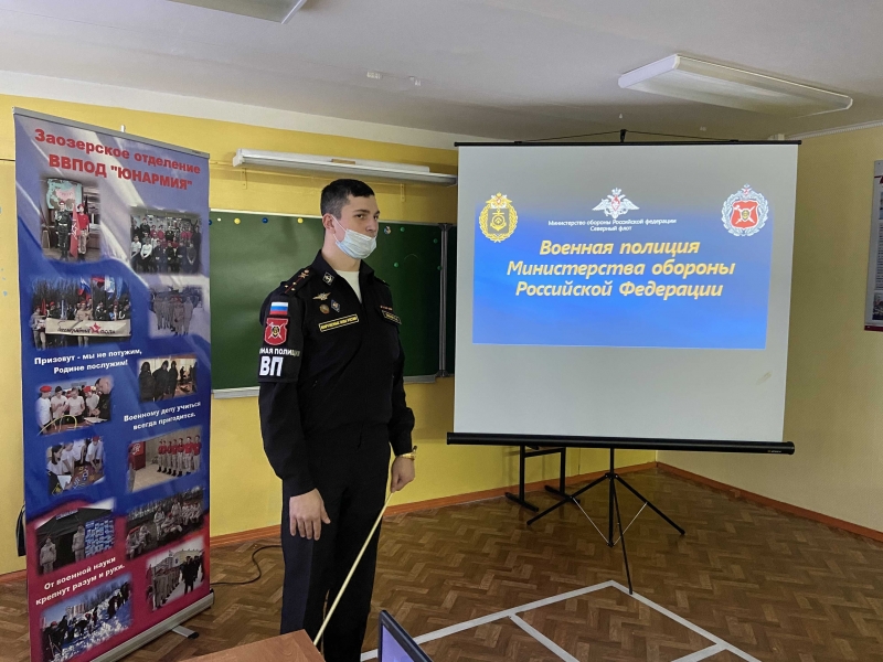 В преддверии празднования Дня защитника Отечества сотрудники военной комендатуры провели для воспитанников Заозерского отделения Всероссийского военно-патриотического движения «ЮНАРМИЯ» мероприятие, направленное на популяризацию деятельности военной полиции и воспитание в подрастающем поколении патриотического сознания.