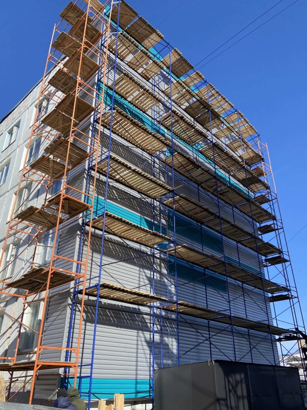 Подготовительные работы уже завершены в пятиэтажных домах по нескольким адресам. На сегодняшний день специалисты приступили там к монтажу утеплителя и обшивке торцевых стен металлосайдингом.