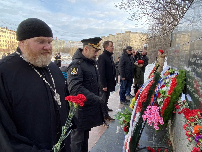 В торжественно-траурном митинге приняли участие командир соединения АПЛ контр-адмирал Александр Заренков, председатель Мурманской областной Думы, член фракции “Единая Россия” Сергей Дубовой, председатель Совета депутатов ЗАТО город Заозерск Игорь Винокур, настоятель Прихода церкви Святителя Николая Чудотворца протоиерей Александр Зайцев.