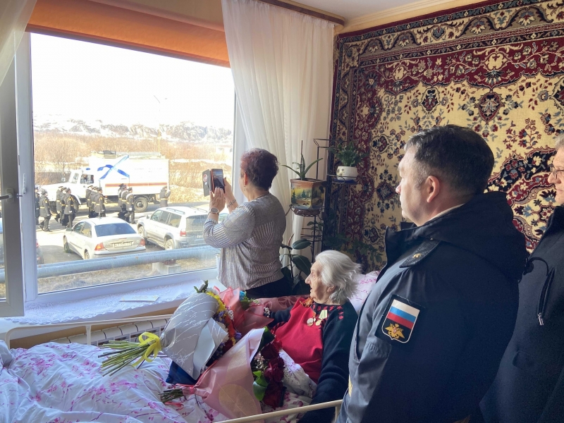 В ЗАТО город Заозерск в День Победы руководство города, военнослужащие, представители МЧС России персонально поздравили ветеранов Великой Отечественной войны.