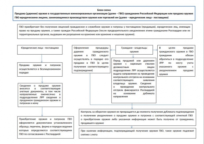 В соответствии с Порядком, Минобороны России приобретает без получения лицензий гражданское и служебное оружие и патроны к нему у поставщиков (продавцов), юридических лиц, имеющих право на продажу оружия, а также граждан Российской Федерации (после предварительного уведомления этими гражданами Федеральной службы войск национальной гвардии Российской Федерации или её территориальных органов, выдавших им разрешения на хранение или хранение и ношение оружия).