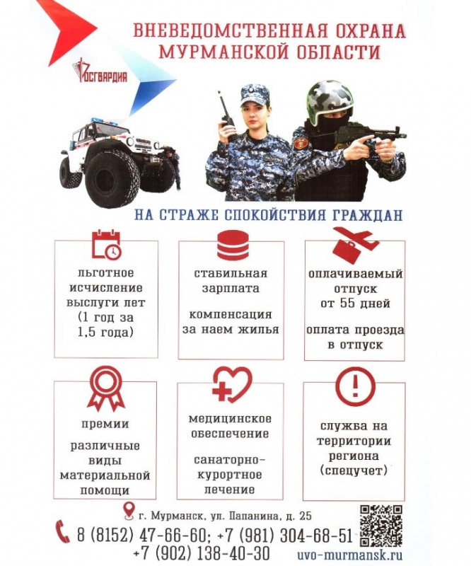 Вневедомственная охрана Мурманской области приглашает на службу кандидатов.