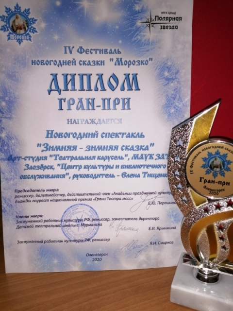 Гран-при фестиваля получил новогодний спектакль «Зимняя-зимняя сказка» детской арт - студии «Театральная карусель» ЦКБО под руководством талантливого и опытного педагога Е. С. Тищенко.