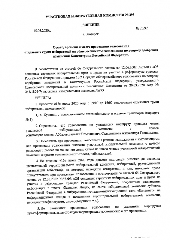 Информация участковой избирательной комиссии №293 о назначении даты, времени и места проведения голосования отдельной группы избирателей, находящихся в отдаленной местности